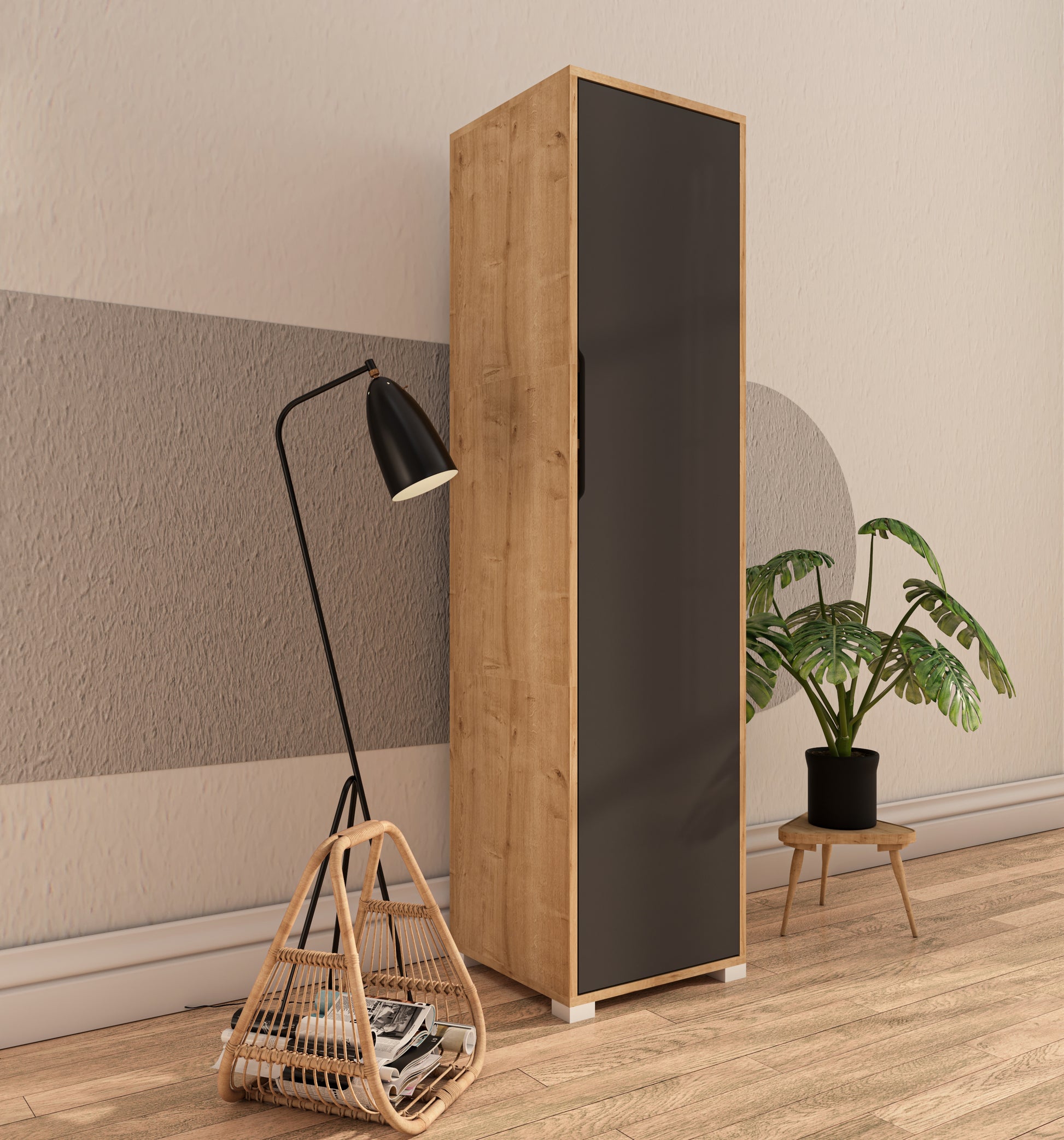 Flora 1 Kapaklı 5 Raflı Gardırop Safir Meşe - Antrasit Elbise Dolabı