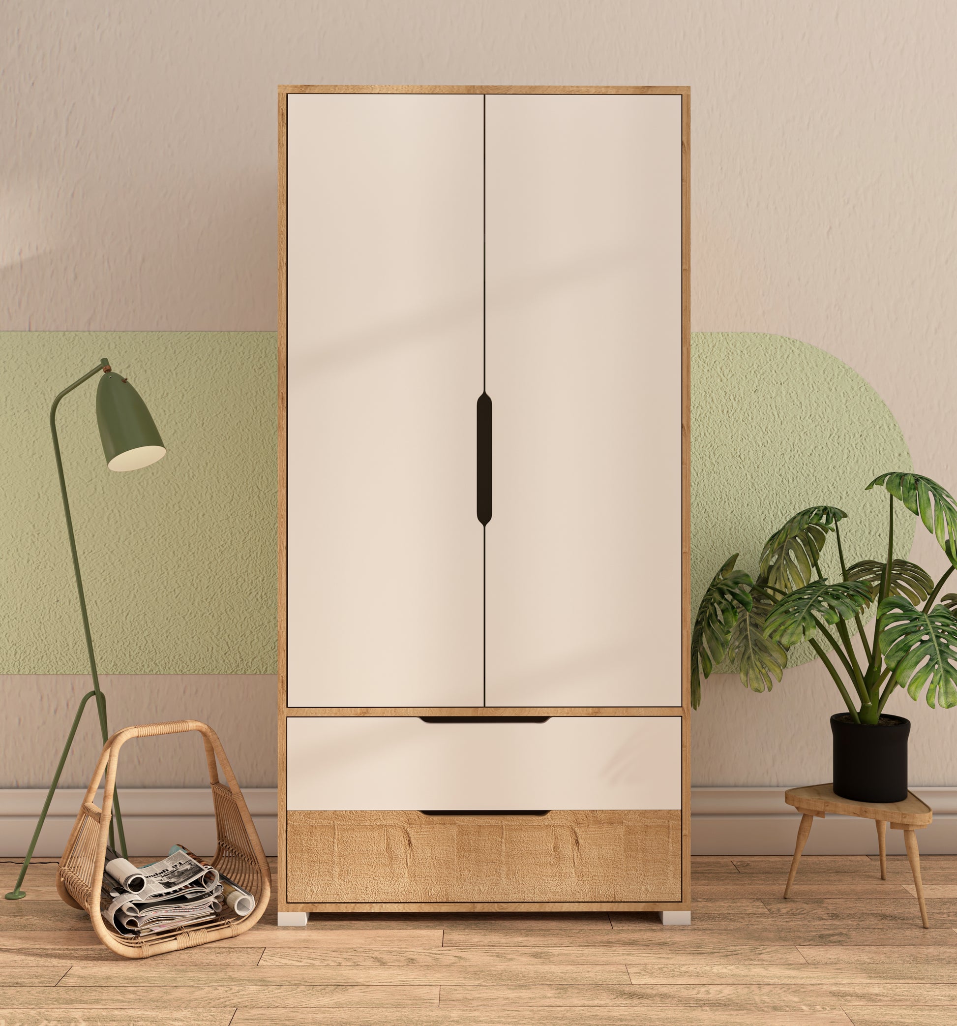 Flora 2 Kapaklı 2 Çekmeceli Gardırop Safir Meşe - Beyaz Elbise Dolabı