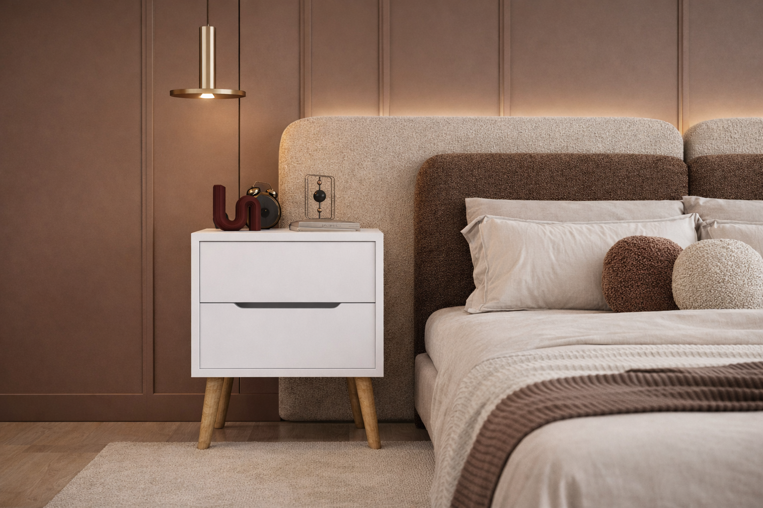 Sade ve zamansız tasarımıyla Flora 2 Çekmeceli Komodin, yatak odası ve bebek odası kullanımına uygun, pratik ve düzenleyici bir mobilya parçasıdır.