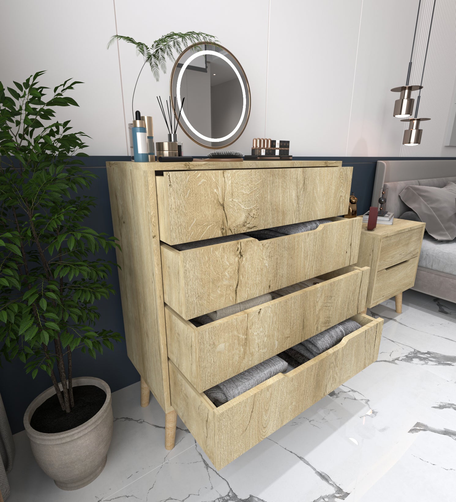 Flora Şifonyer 4 Çekmeceli Yatak Odası Bebek Odası Safir Meşe