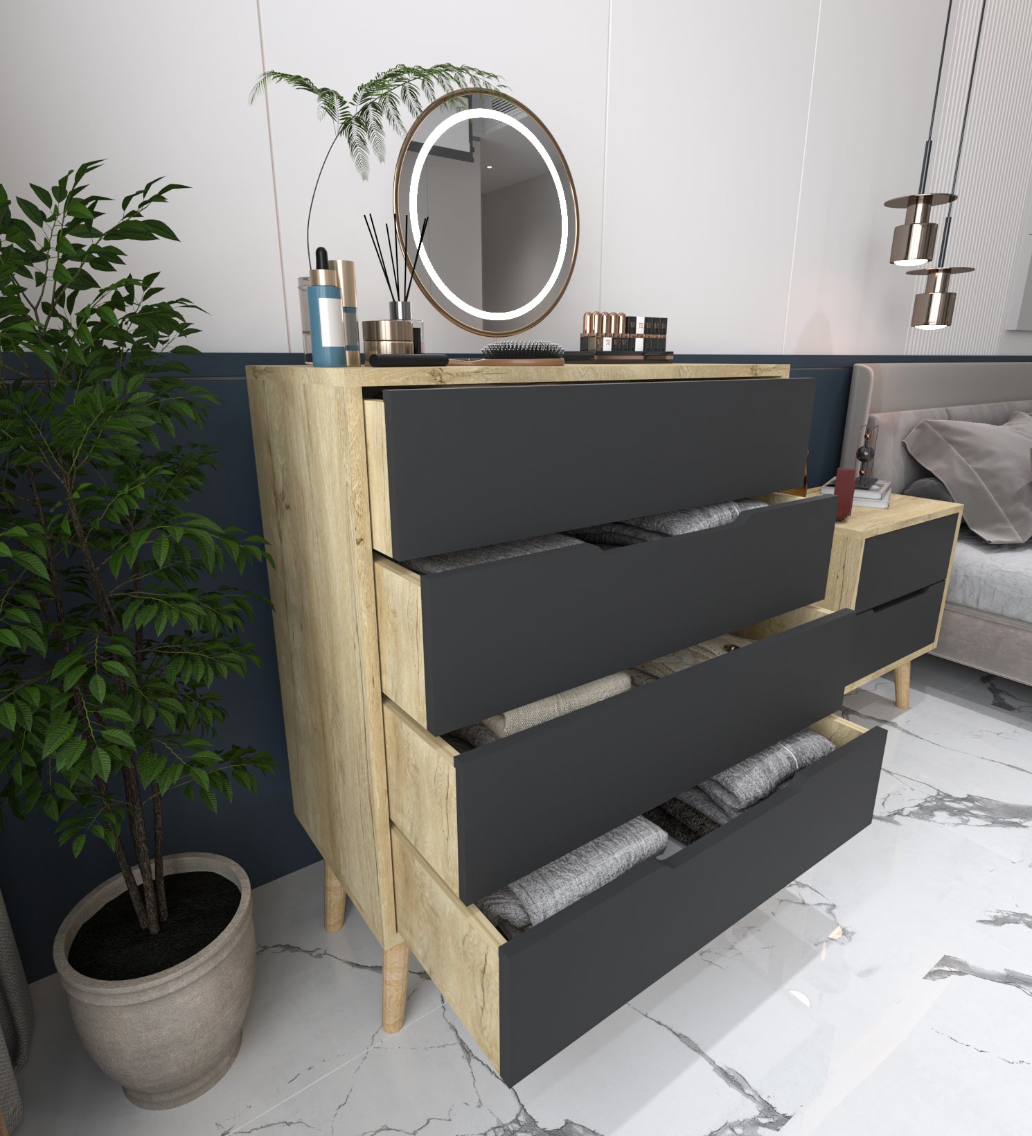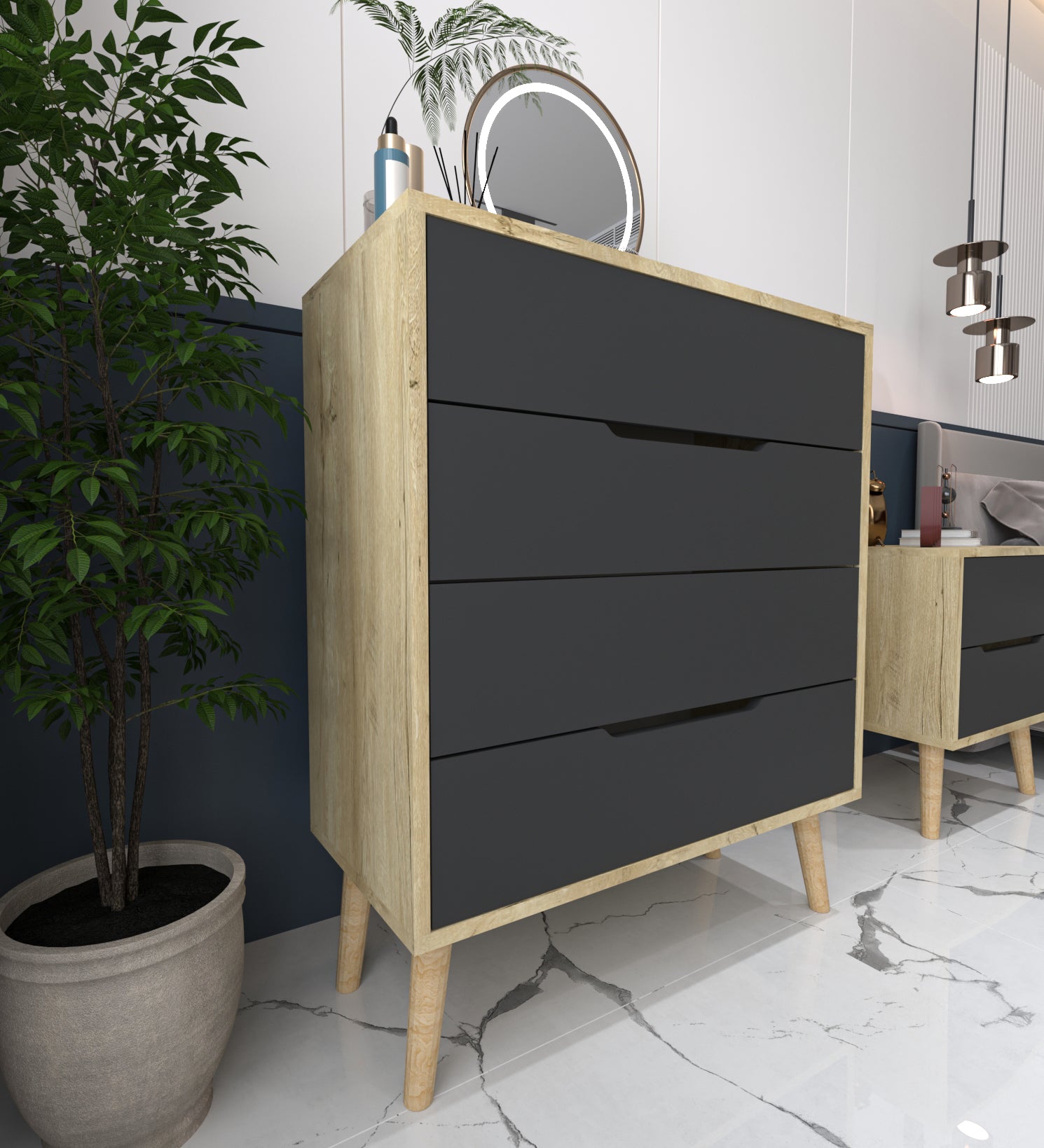 Flora Şifonyer 4 Çekmeceli Yatak Odası Bebek Odası Safir Meşe-Antrasit