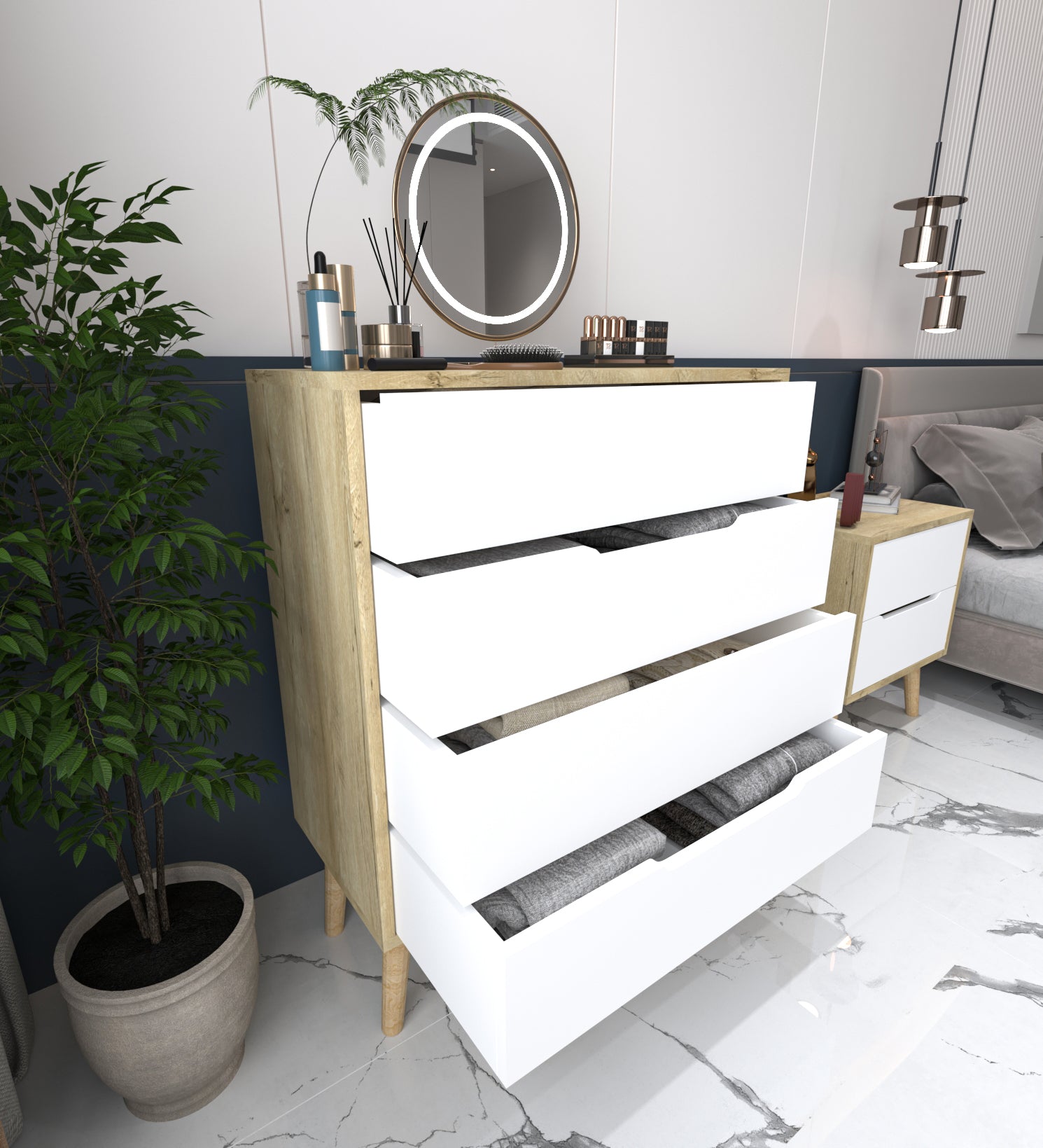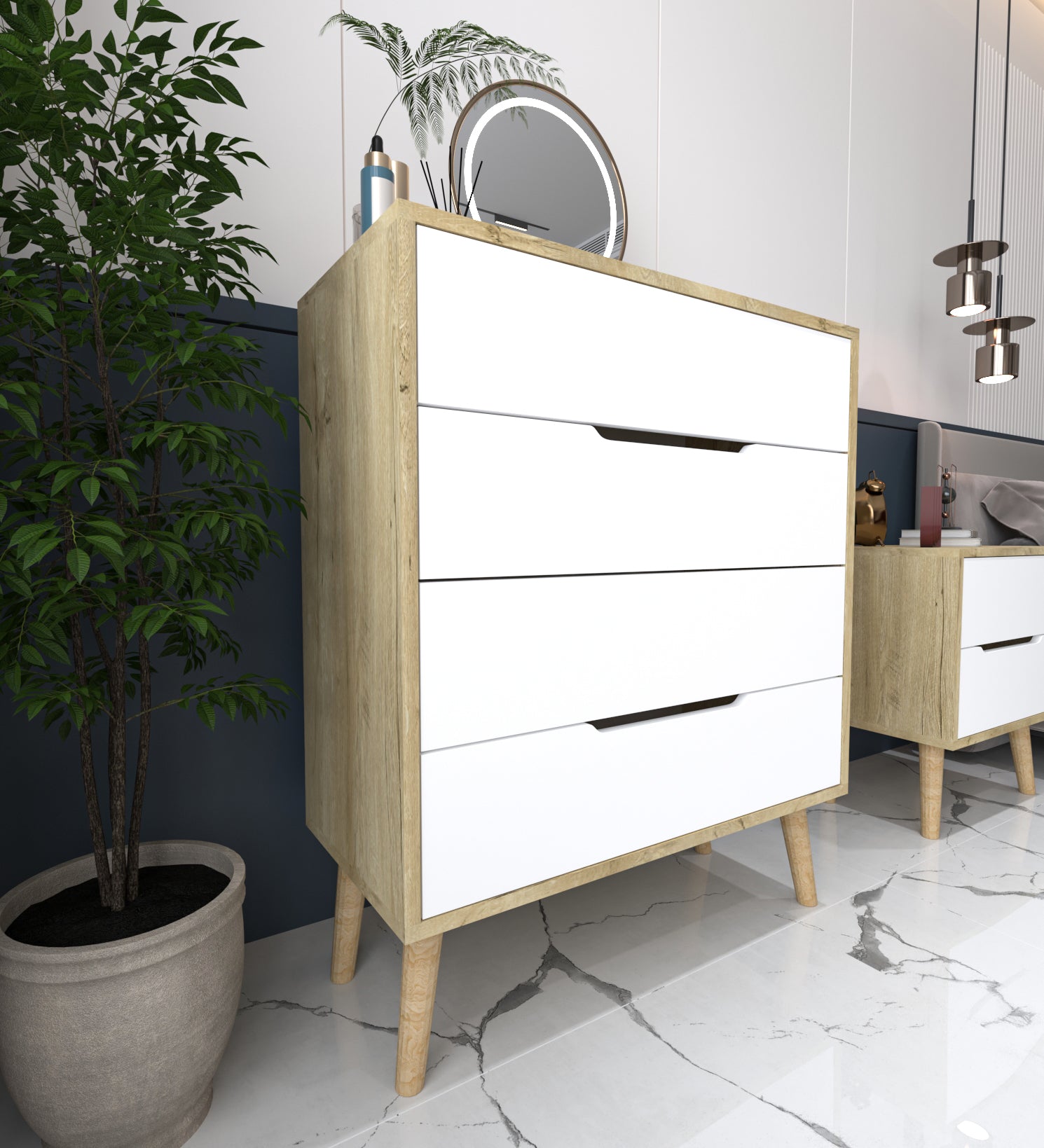 Flora Şifonyer 4 Çekmeceli Yatak Odası Bebek Odası Safir Meşe-Beyaz