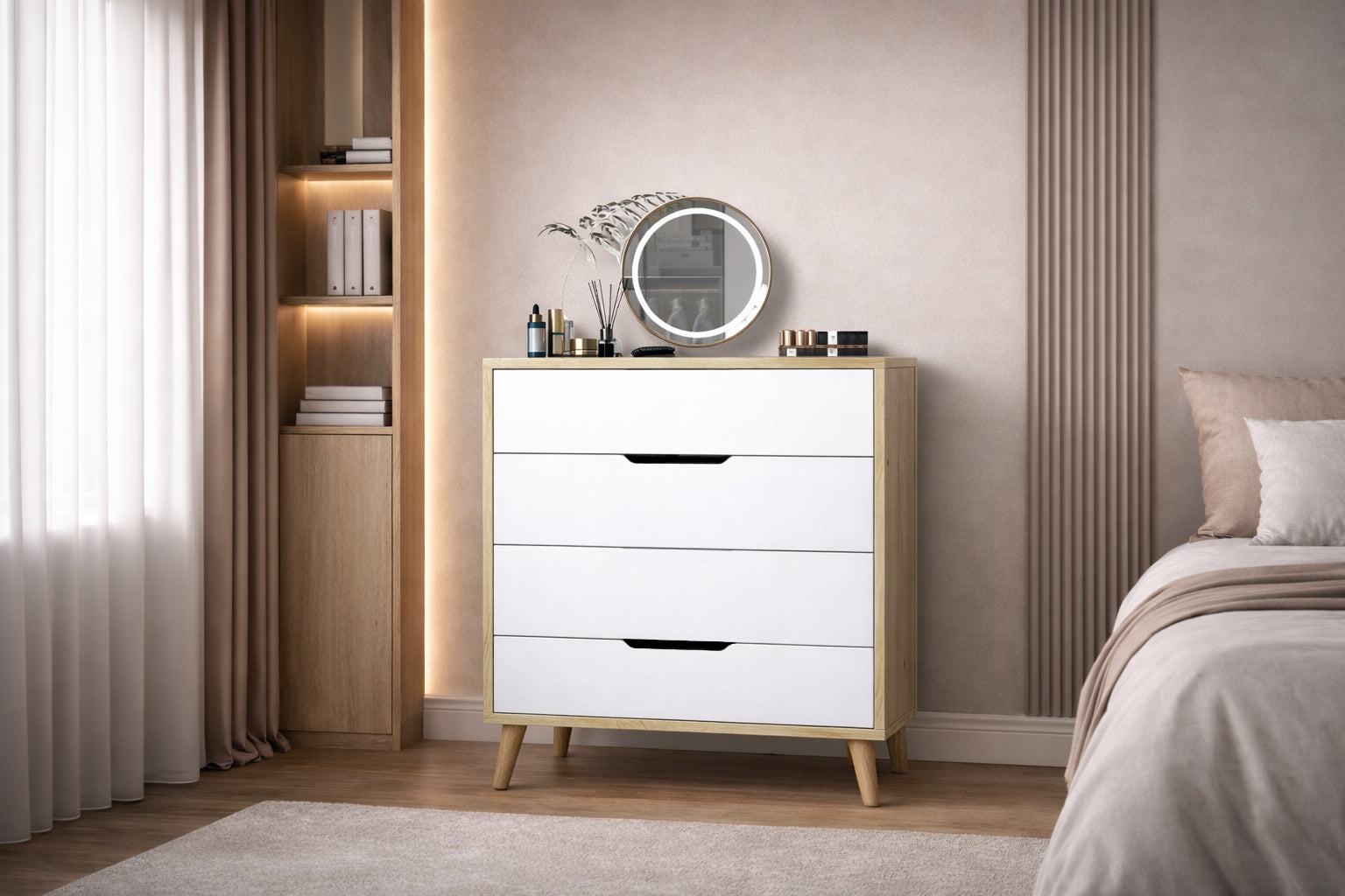 Dört çekmeceli yapısı sayesinde kıyafetler, aksesuarlar ve günlük eşyalar için geniş bir depolama alanı sunar. Kompakt ölçüleriyle alanı verimli kullanmanıza yardımcı olurken, modern tasarımıyla farklı dekorasyon stillerine kolayca uyum sağlar.