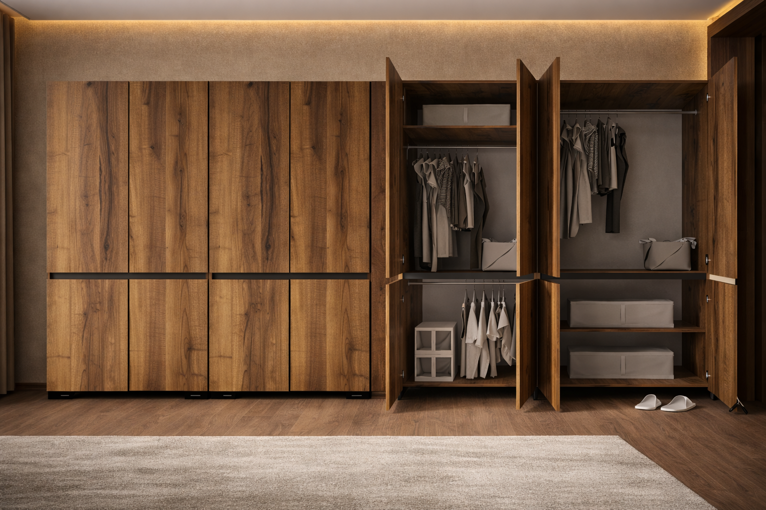 Geniş aile kullanımı ve yoğun depolama ihtiyacı için ideal, pratik bir gardırop modelidir.