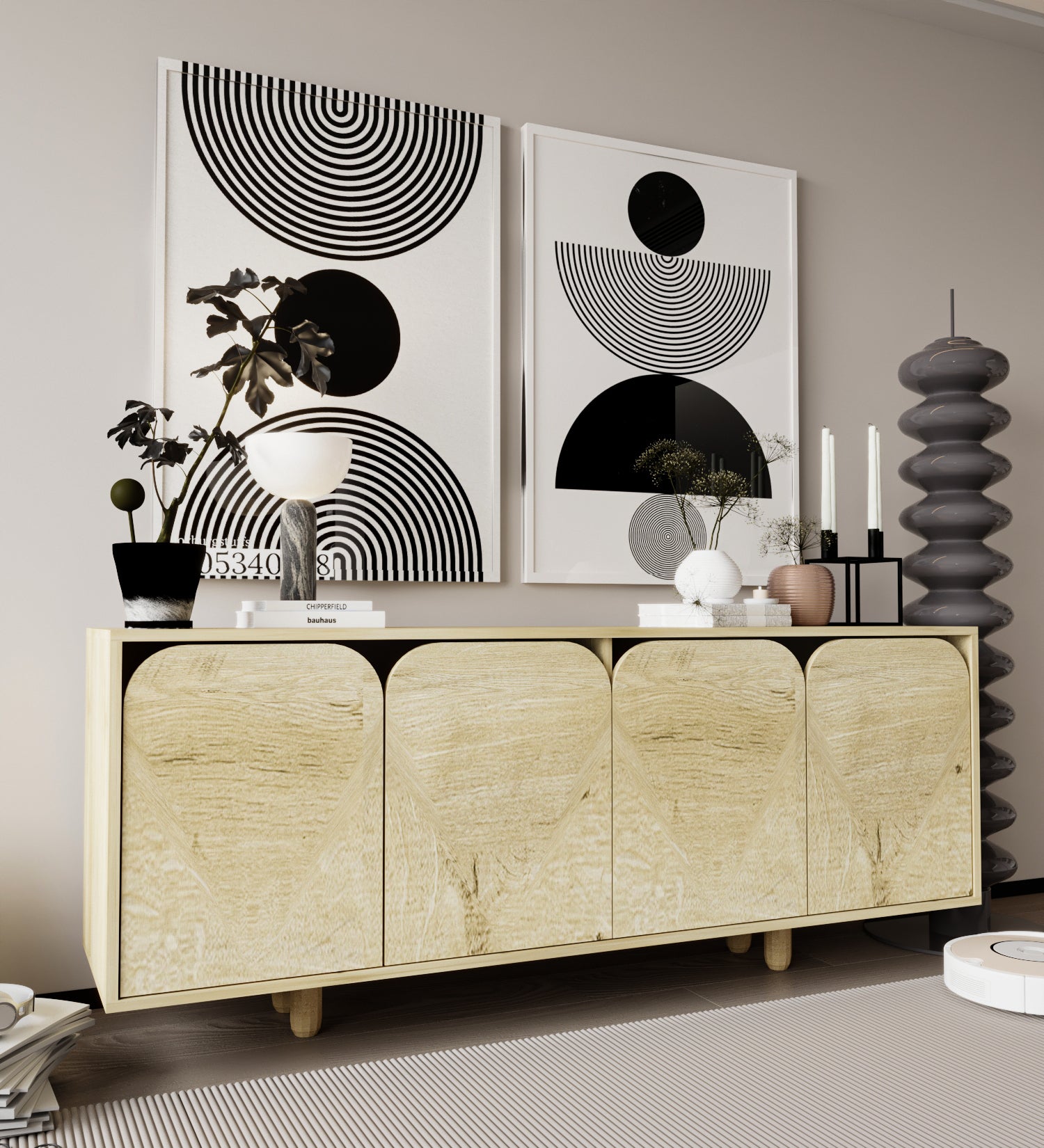 Lazio Bohem Ahşap Ayaklı Modern Konsol 180 Cm Safir Meşe