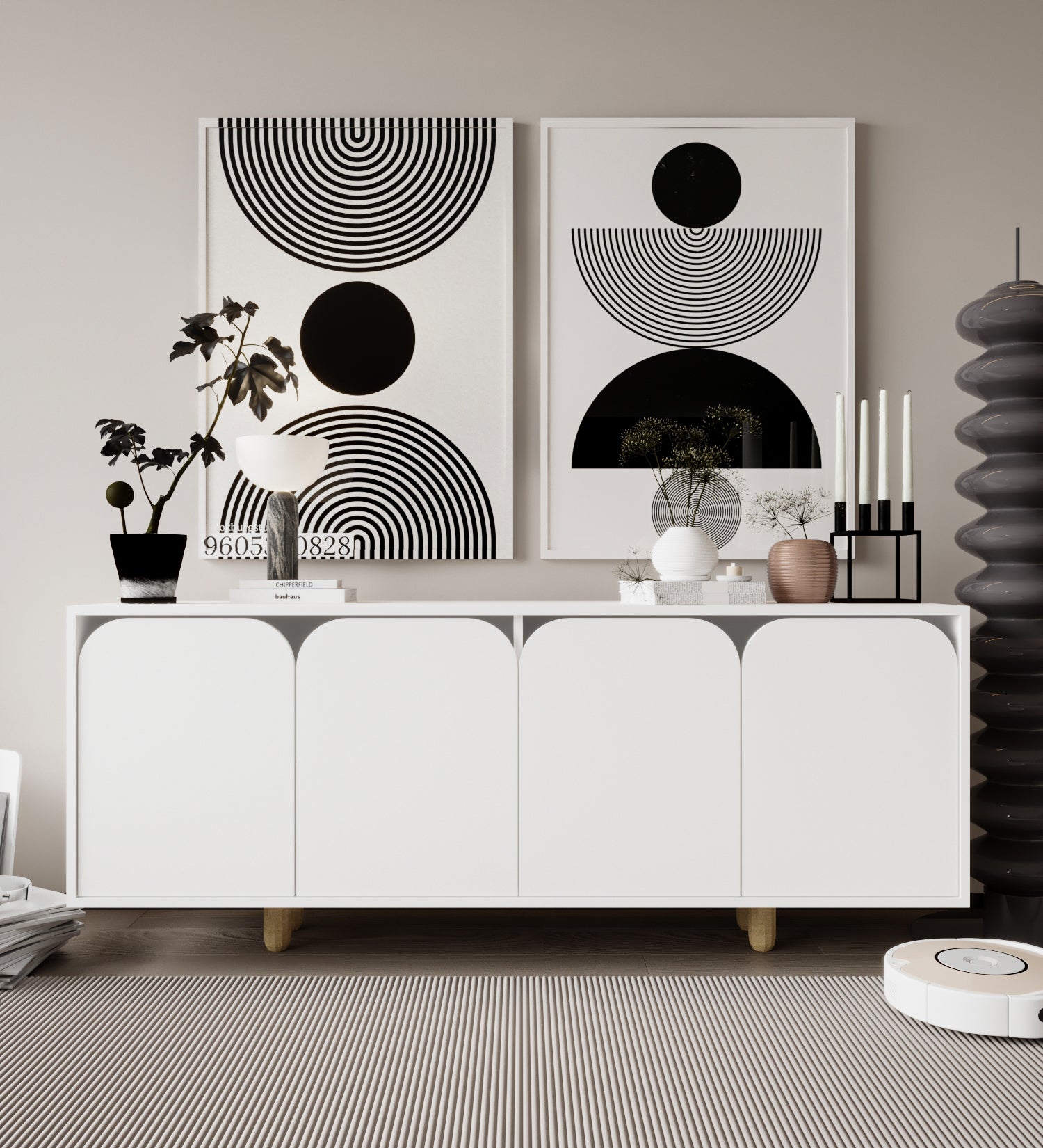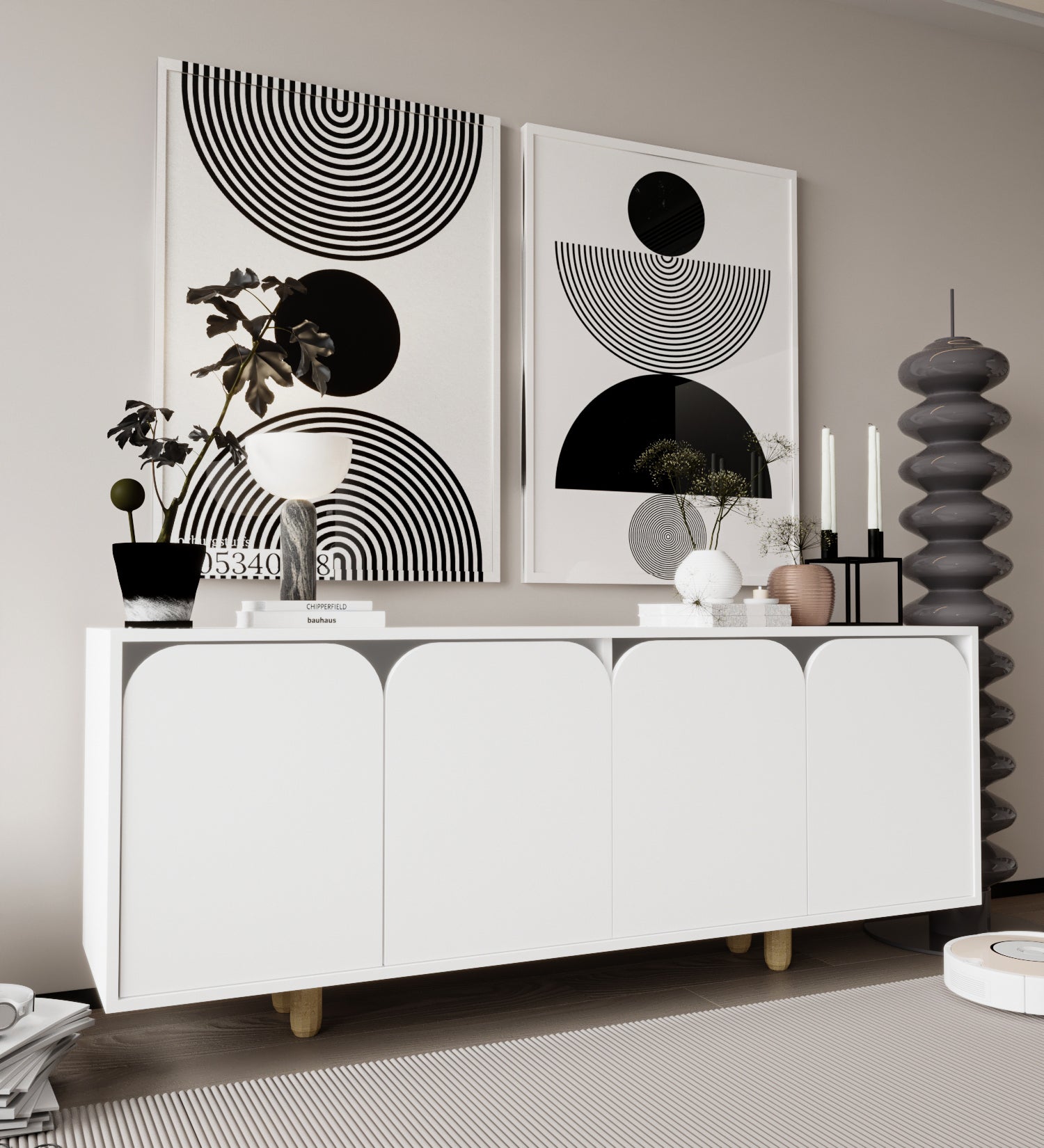 Lazio Bohem Ahşap Ayaklı Tv Ünitesi Tv Sehpası Beyaz