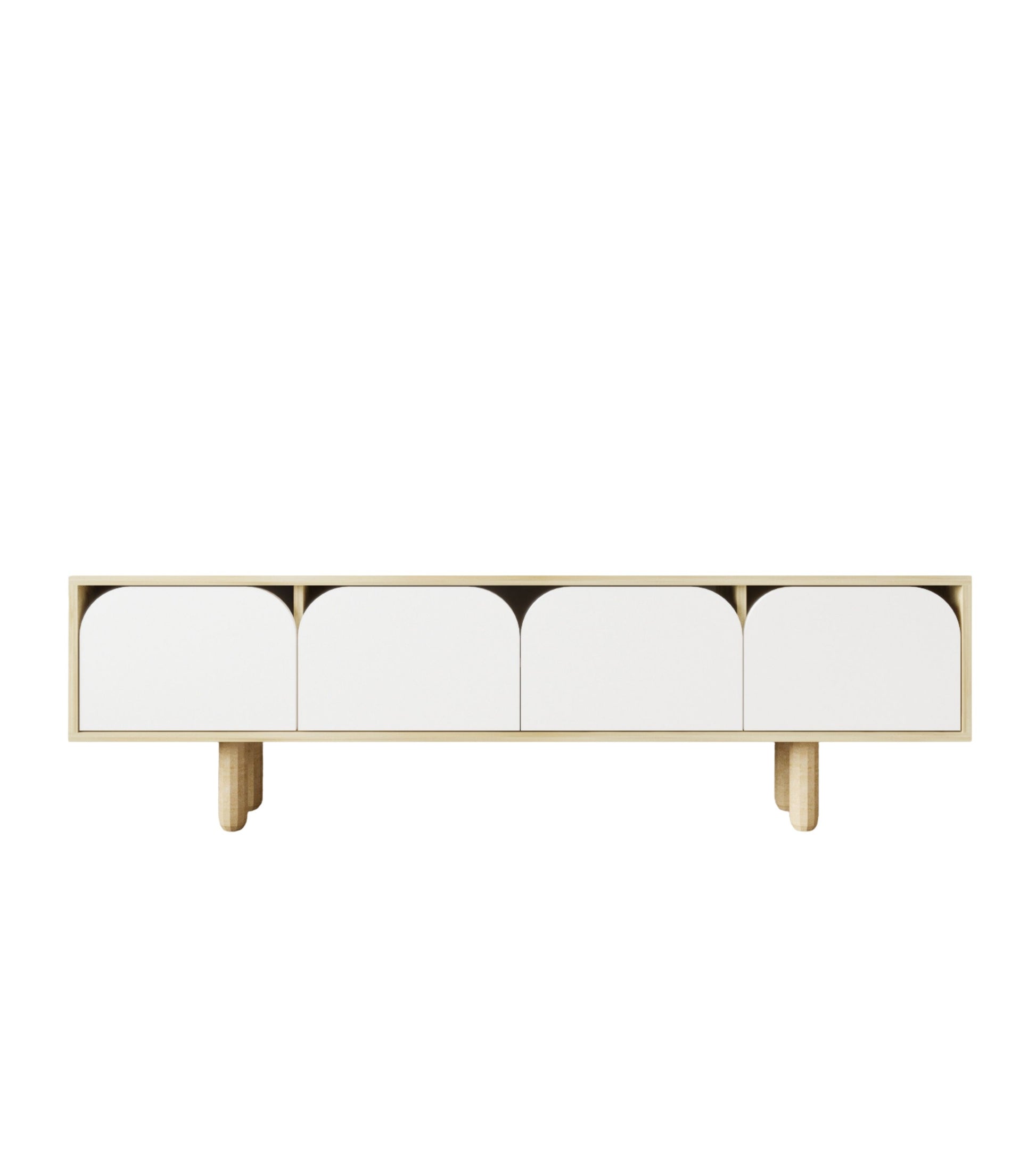 Lazio Bohem Ahşap Ayaklı Tv Ünitesi Tv Sehpası Safir Meşe-Beyaz