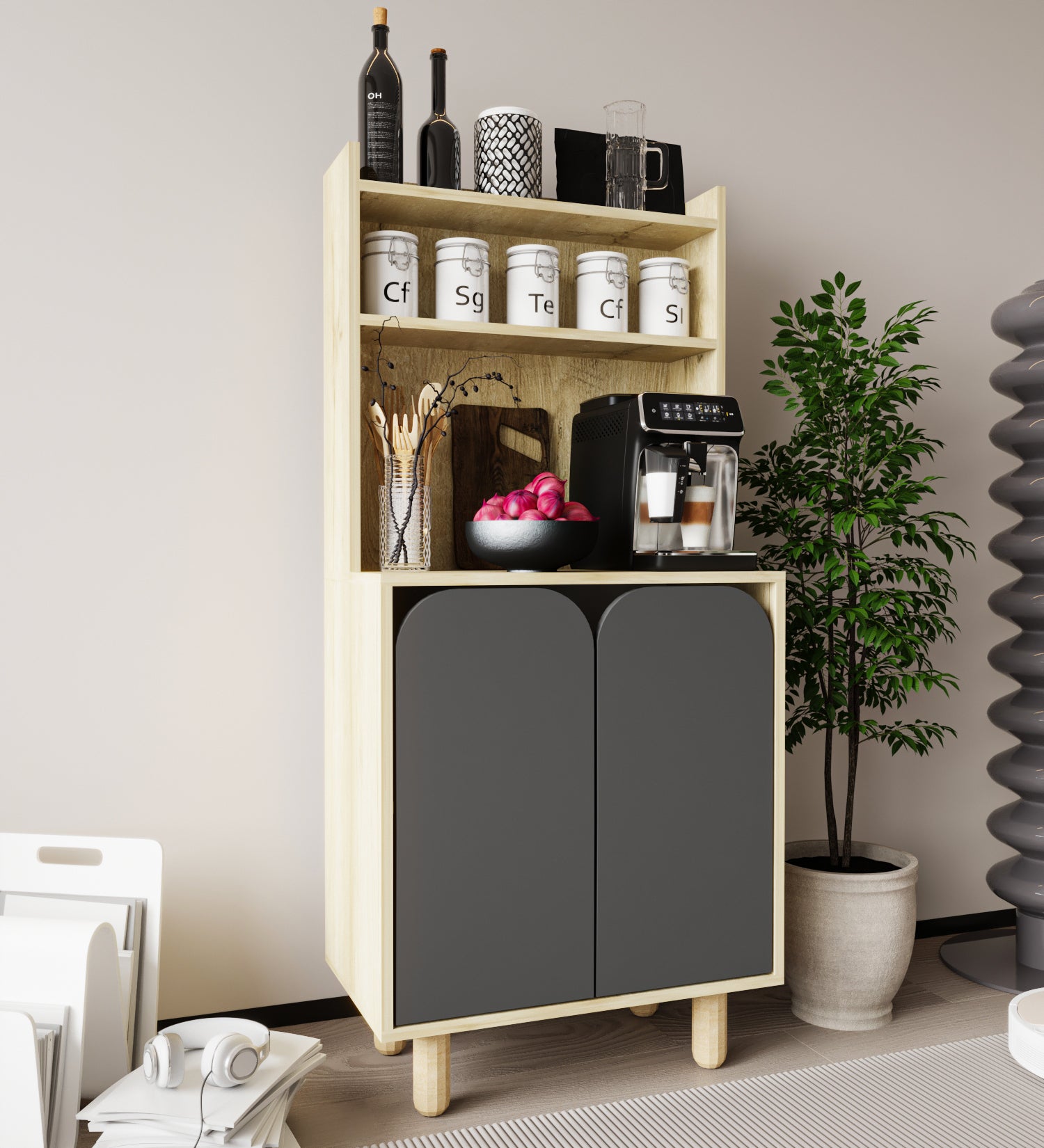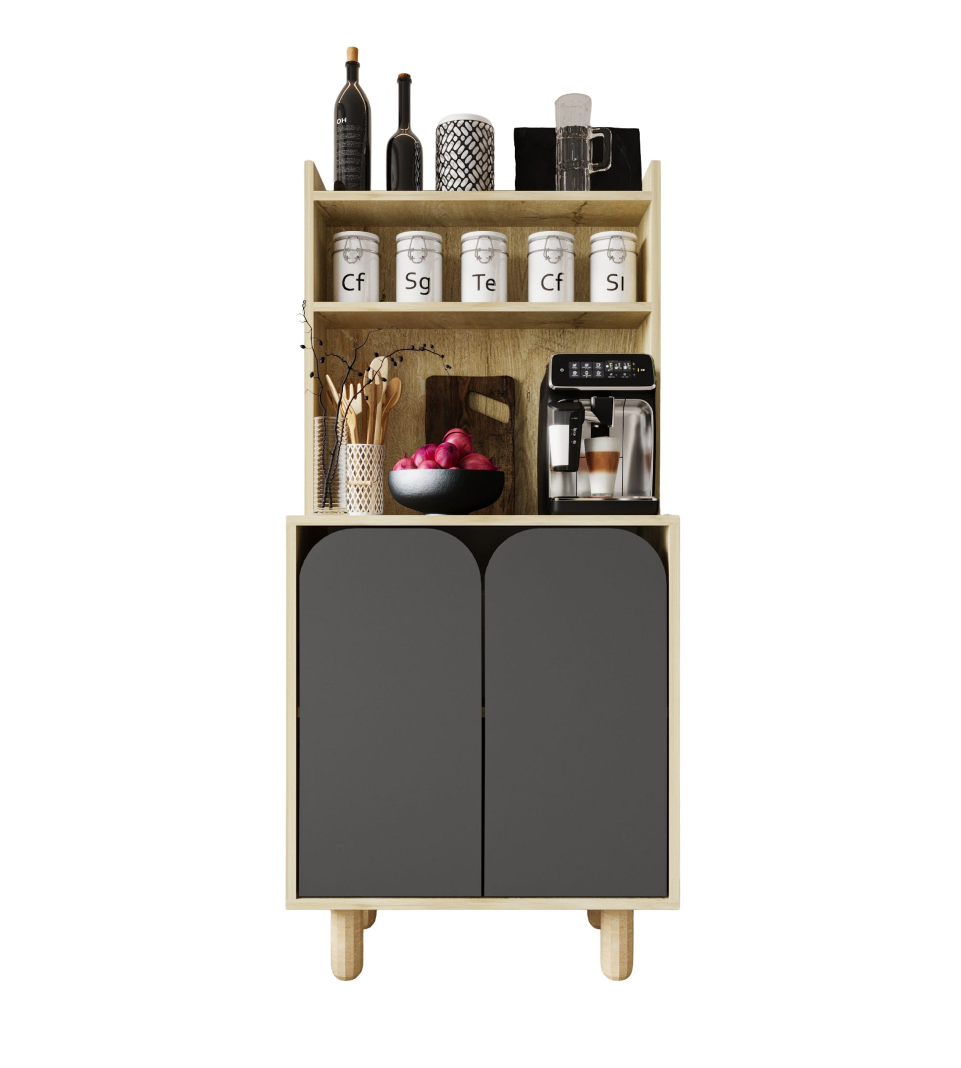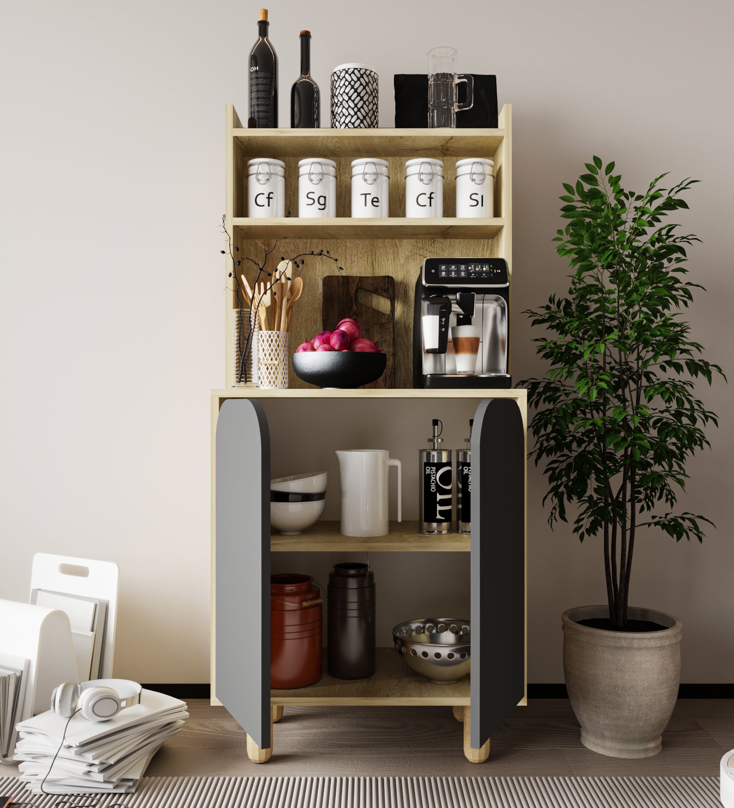 Parma 2 Kapaklı Mutfak Dolap, Kahve Köşesi, Çok Amaçlı Dolap Safir Meşe-Antrasit