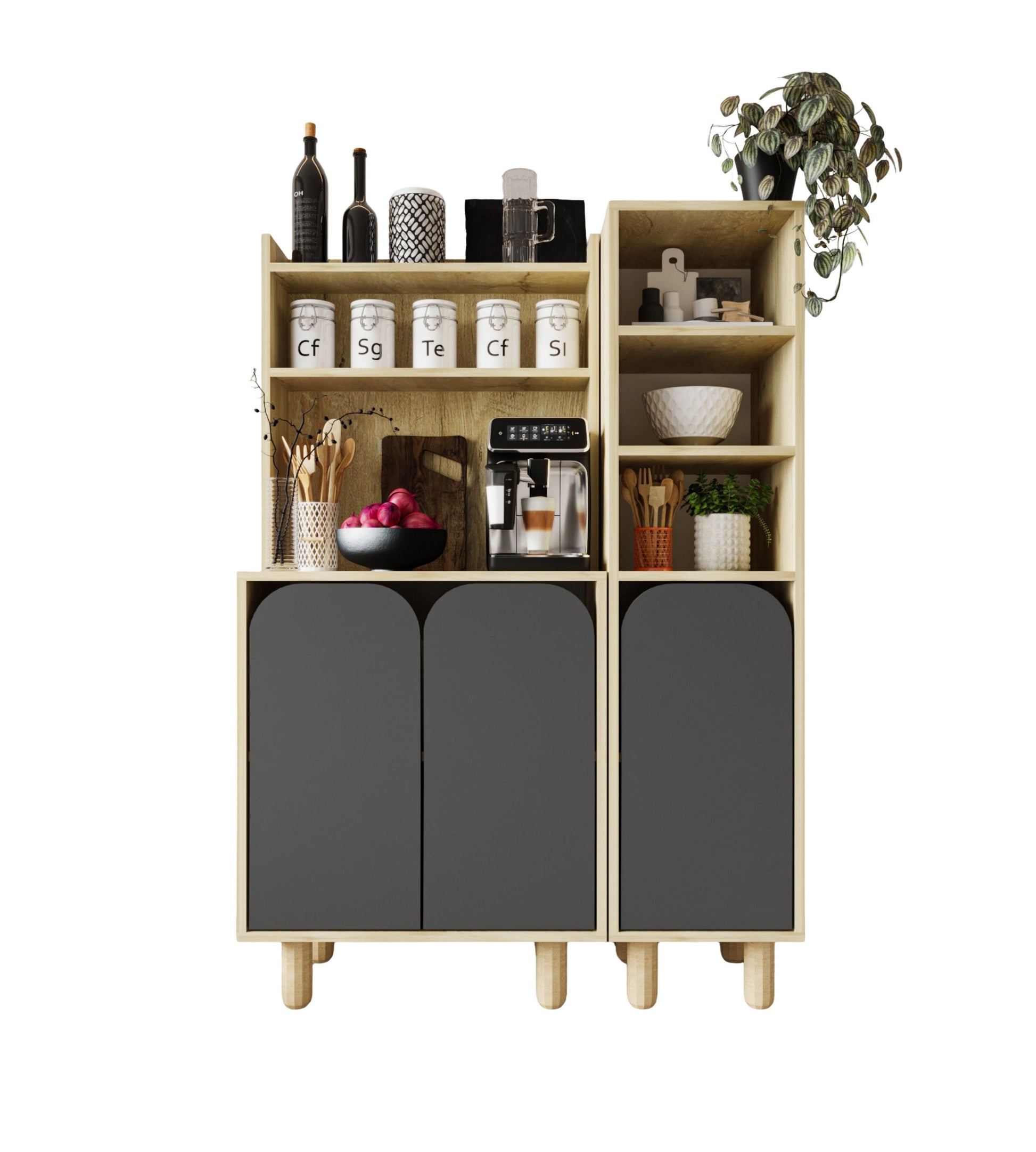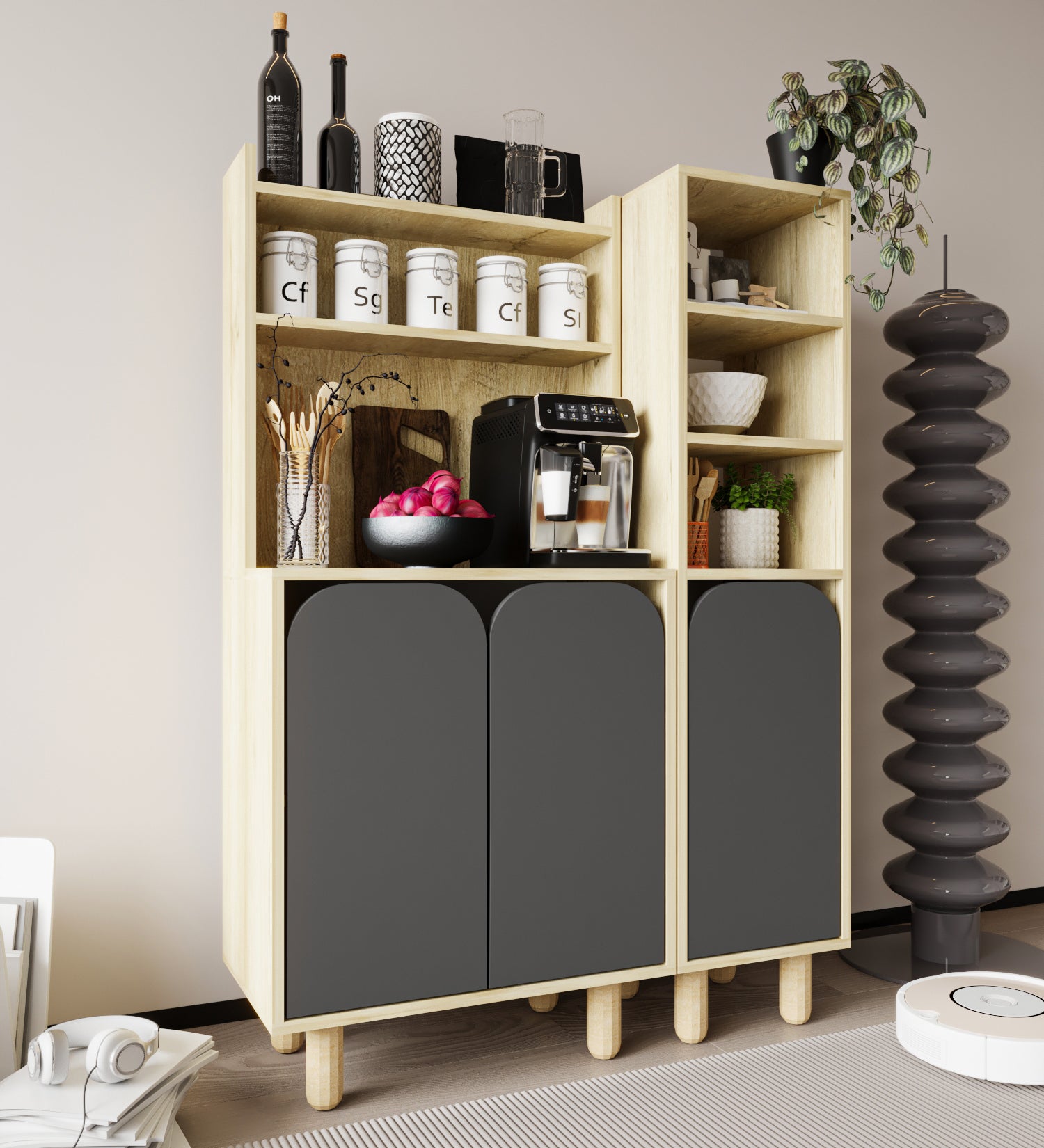 Parma 3 Kapaklı Mutfak Dolap, Kahve Köşesi, Çok Amaçlı Dolap Safir Meşe-Antrasit