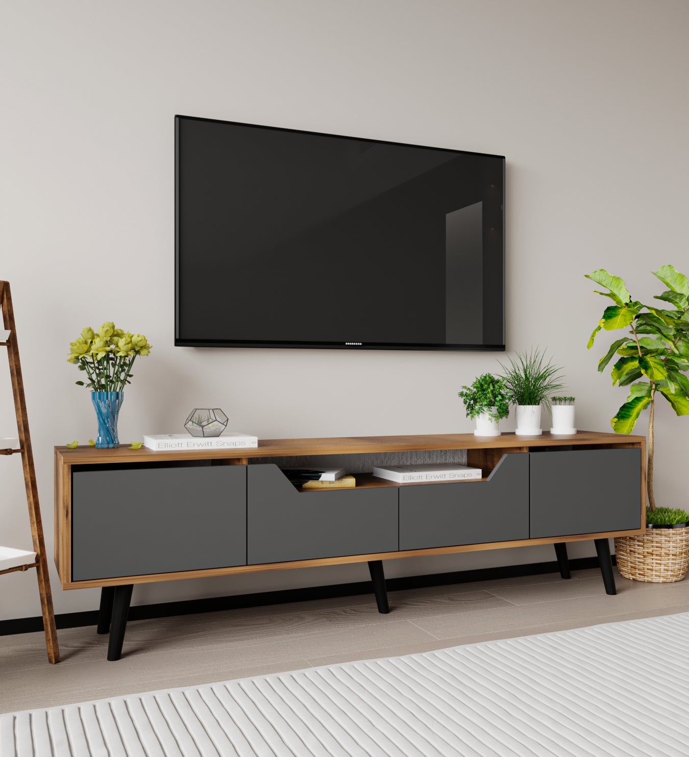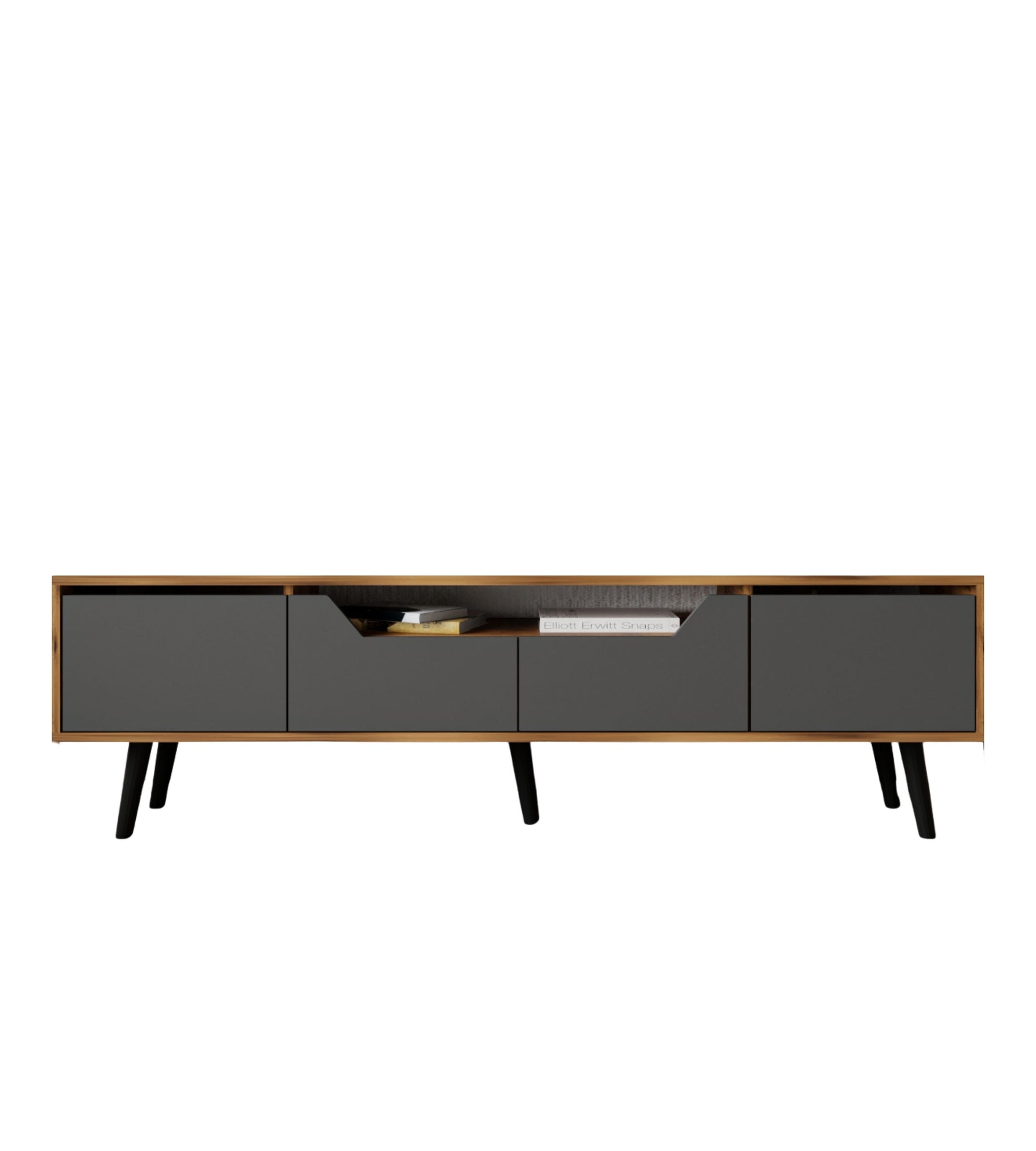Roma Ahşap Ayaklı Tv Ünitesi Tv Sehpası Ceviz-Antrasit