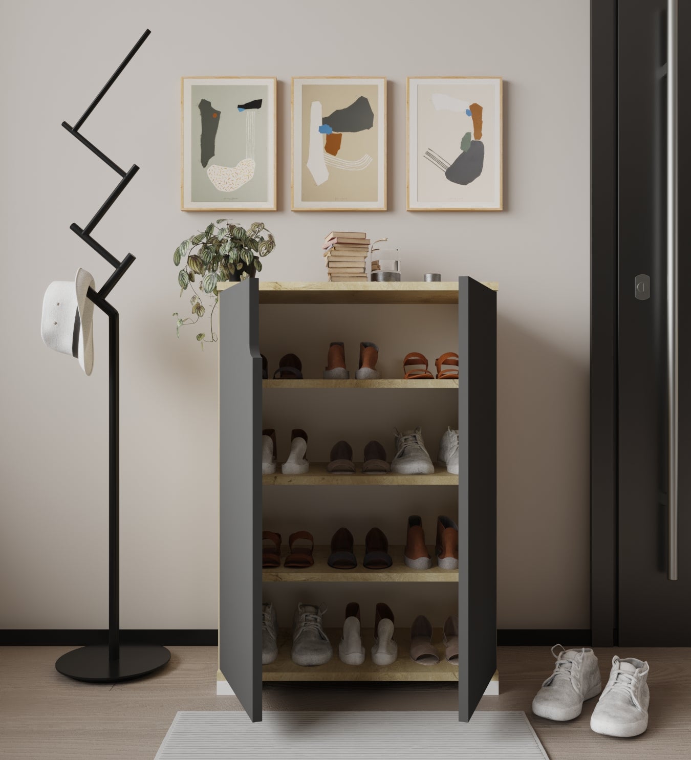 Venedik 4 Bölmeli Ayakkabılık Çok Amaçlı Dolap Mutfak Banyo Kiler Dolabı Safir Meşe Antrasit
