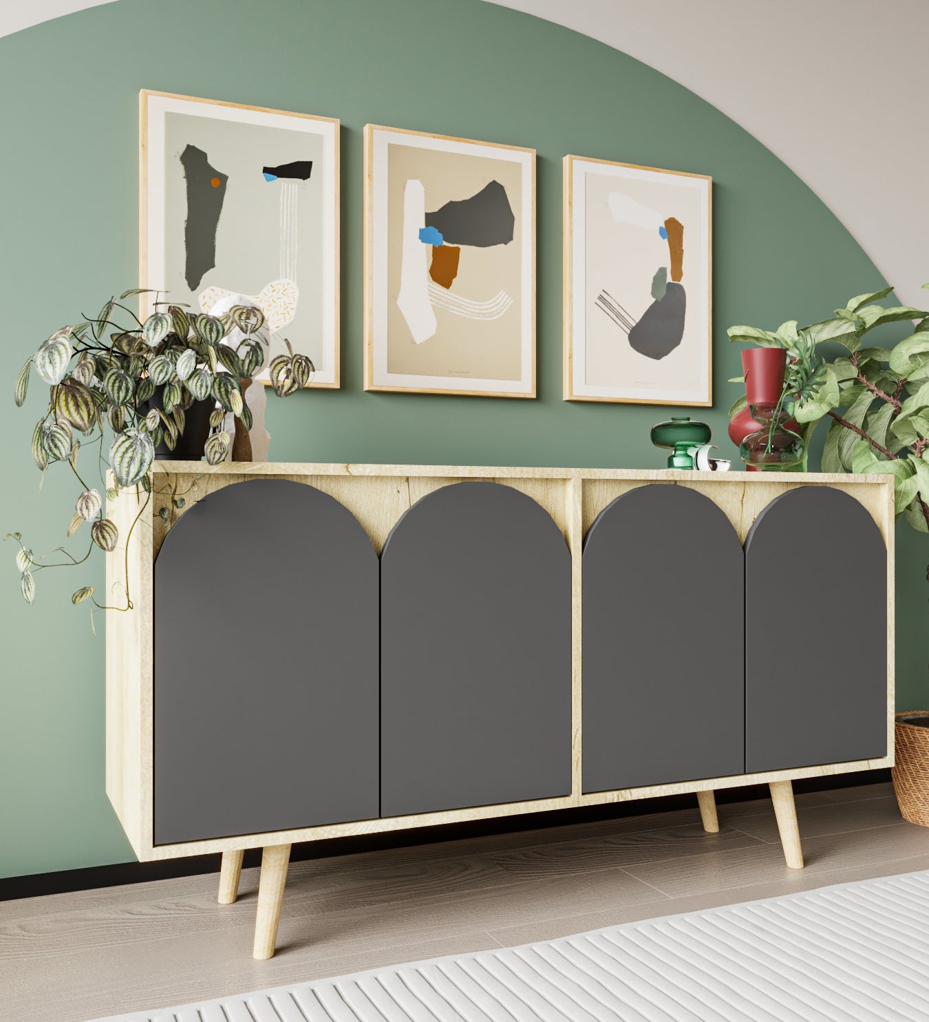 Venezia Ahşap Ayaklı Bohem Konsol Safir Meşe - Antrasit 150 Cm